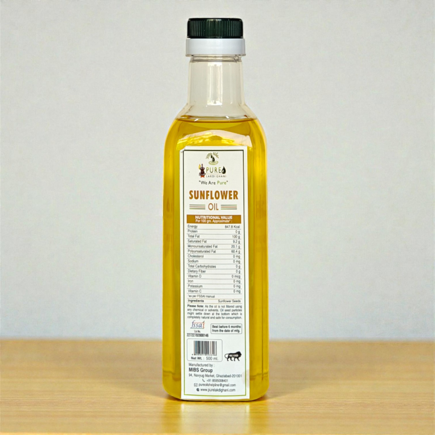 Pure Lakdi Ghani is committed to delivering products that are both traditionally crafted and quality assured. Every batch of sunflower oil passes through strict hygiene and quality checks, ensuring that you receive the purest oil, free from impurities and low in trans fats. The cold-pressed method also ensures that the oil retains its natural golden color and pleasant aroma.